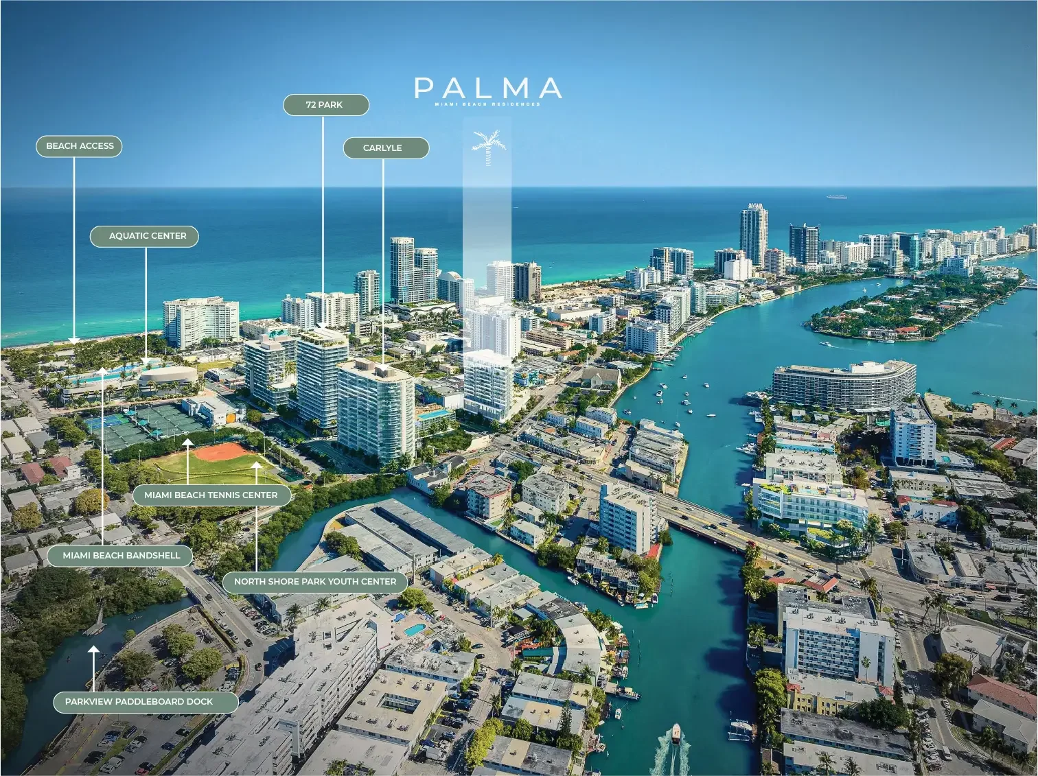 Located in North Beach (NoBe), Palma sits within a residential coastal enclave known for its walkability, emerging dining scene, and relaxed pace — a distinct alternative to the energy of South Beach or the density of Brickell.